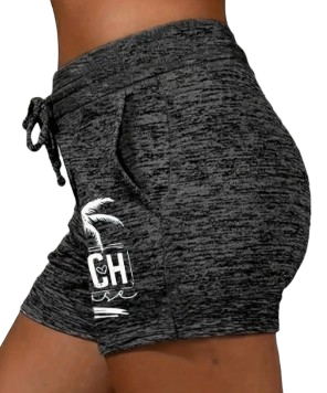 Tropical Coconut Tree & “BEACH” Letter Print, Stretchy Mid-Weight Fabric, Machine Washable Summer Vacation Shorts for Beach Outings & Casual Wear.