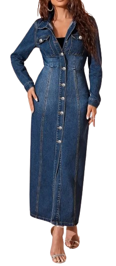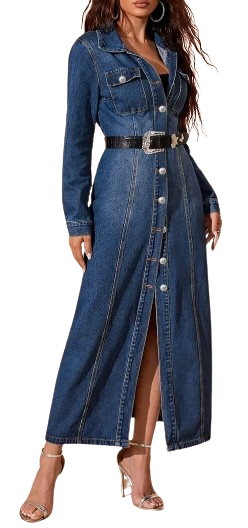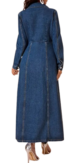 Women’s Elegant Long Denim Coat, Non-Transparent Button-Front Longline Jacket, Machine Washable Fall/Winter Outerwear for Casual & Formal Outfits, Versatile Layering, Timeless Fashion, Quality Stitching, Stylish Wardrobe