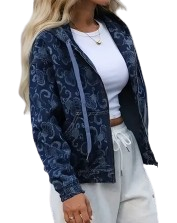 Be the first to review “Women’s Elegant Loose Fit Hooded Denim Jacket with Floral Print”