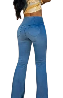 Sexy Bell Bottoms with Cross Waist Detail, Light Blue Washed Finish, Comfortable All-Season Wear, Versatile Fashion Pants | Flared Denim Pants | Comfortable Fit